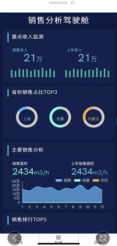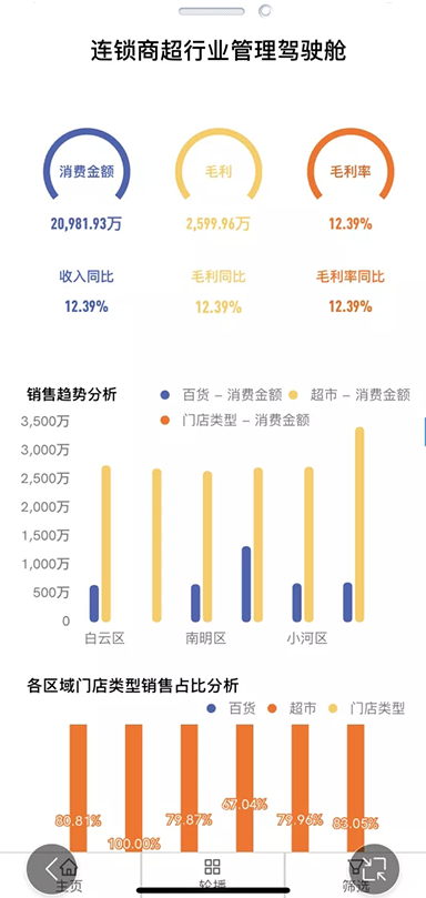 移动端图表组件同样支持报表间穿透钻取,也支持图表之间的数据联动等分析功能。